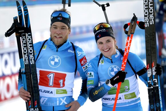 Команда Франции в составе Антуана Гигонна и Жулии Симон одержала победу в эстафете сингл-микст на чемпионате мира по биатлону в словенской Поклюке, сообщает сайт «Комсомольской правды».